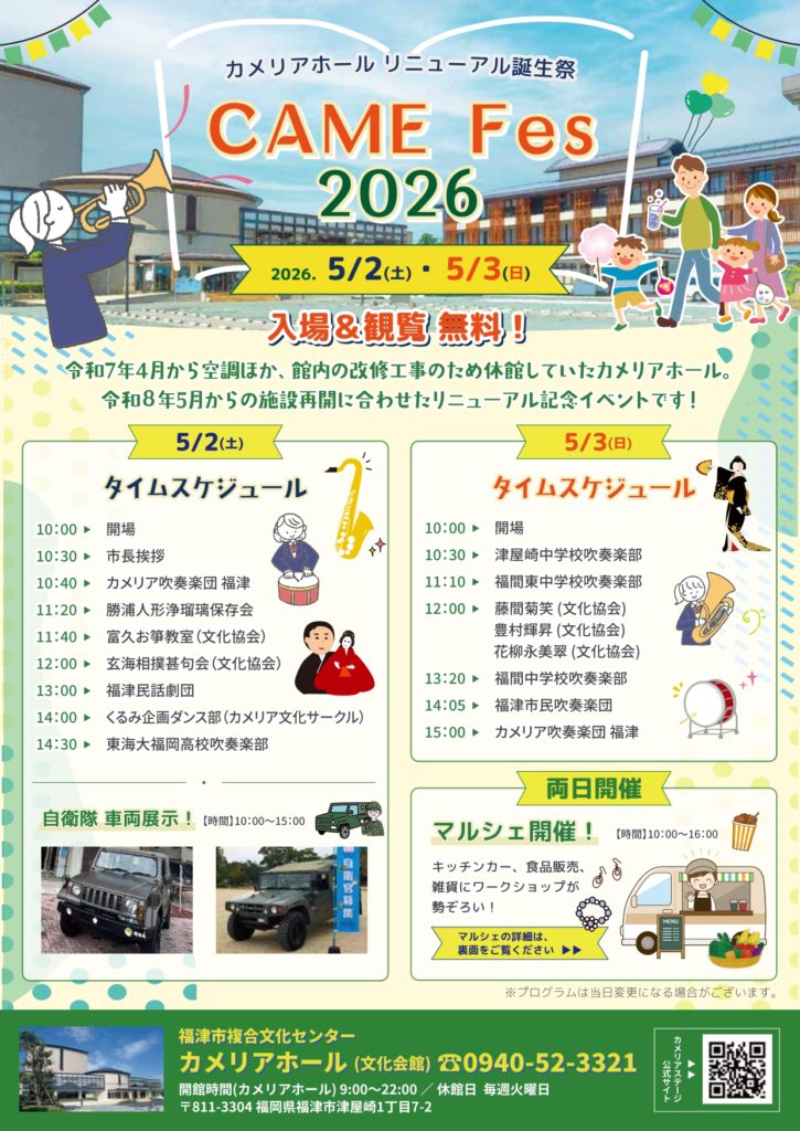 カメリアホール リニューアルオープン記念『CAME Fes 2026』開催‼